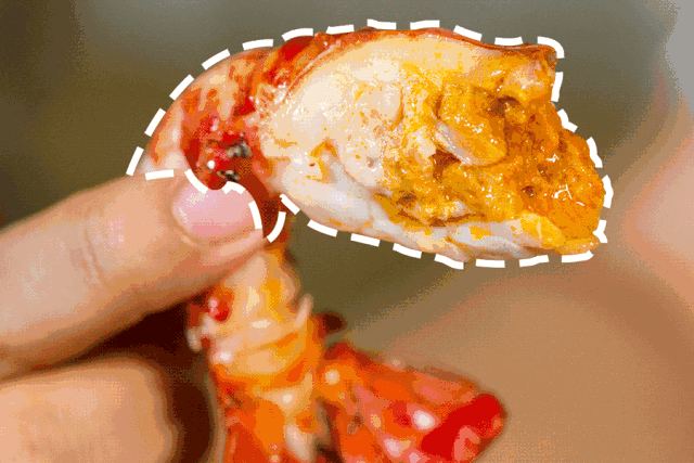两手合拢,用力一掰,伴随一声脆响,白嫩的虾肉连带着丰富的虾黄脱壳而出,配以香辣的汤汁,一口吃到嘴里,别提多逍遥自在了。吃完以后,指缝间龙虾的香味仍旧久久不散去,萦绕在心间。 |